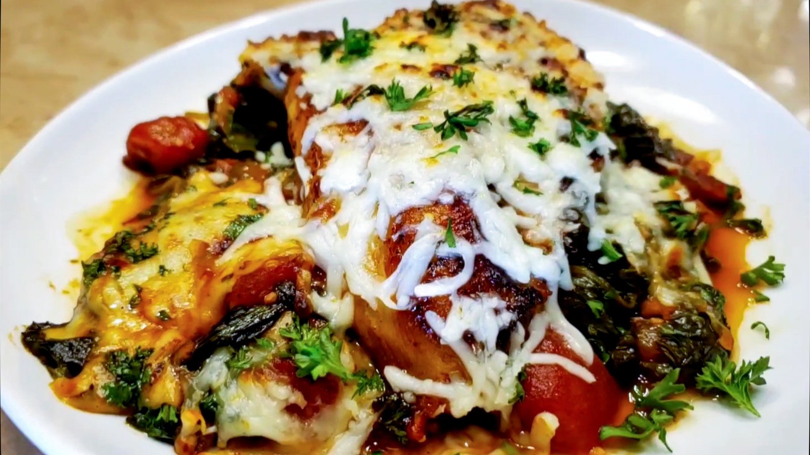 Mozzarella Chicken in a Creamy Spinach Tomato Sauce