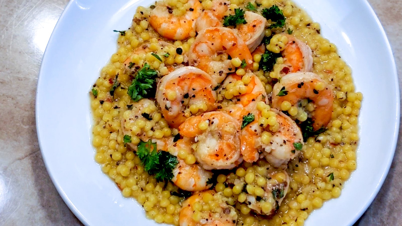 Shrimp Scampi over Israeli Couscous