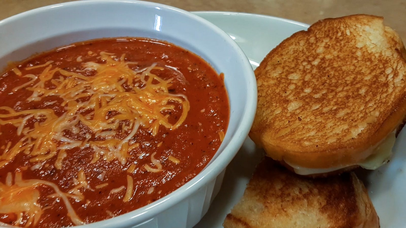 Try this delicious Fire Roasted Tomato Soup and grilled cheese recipe
